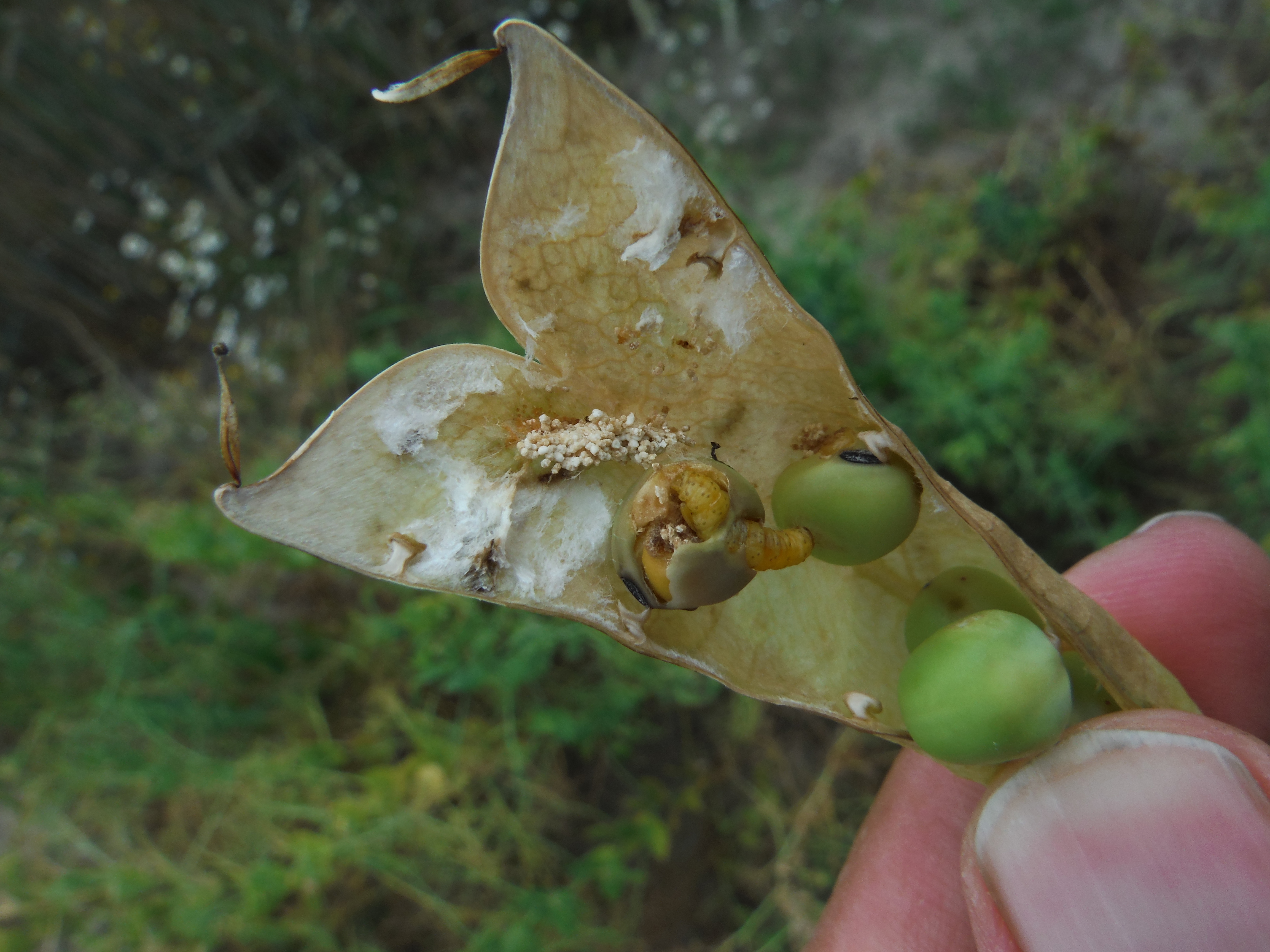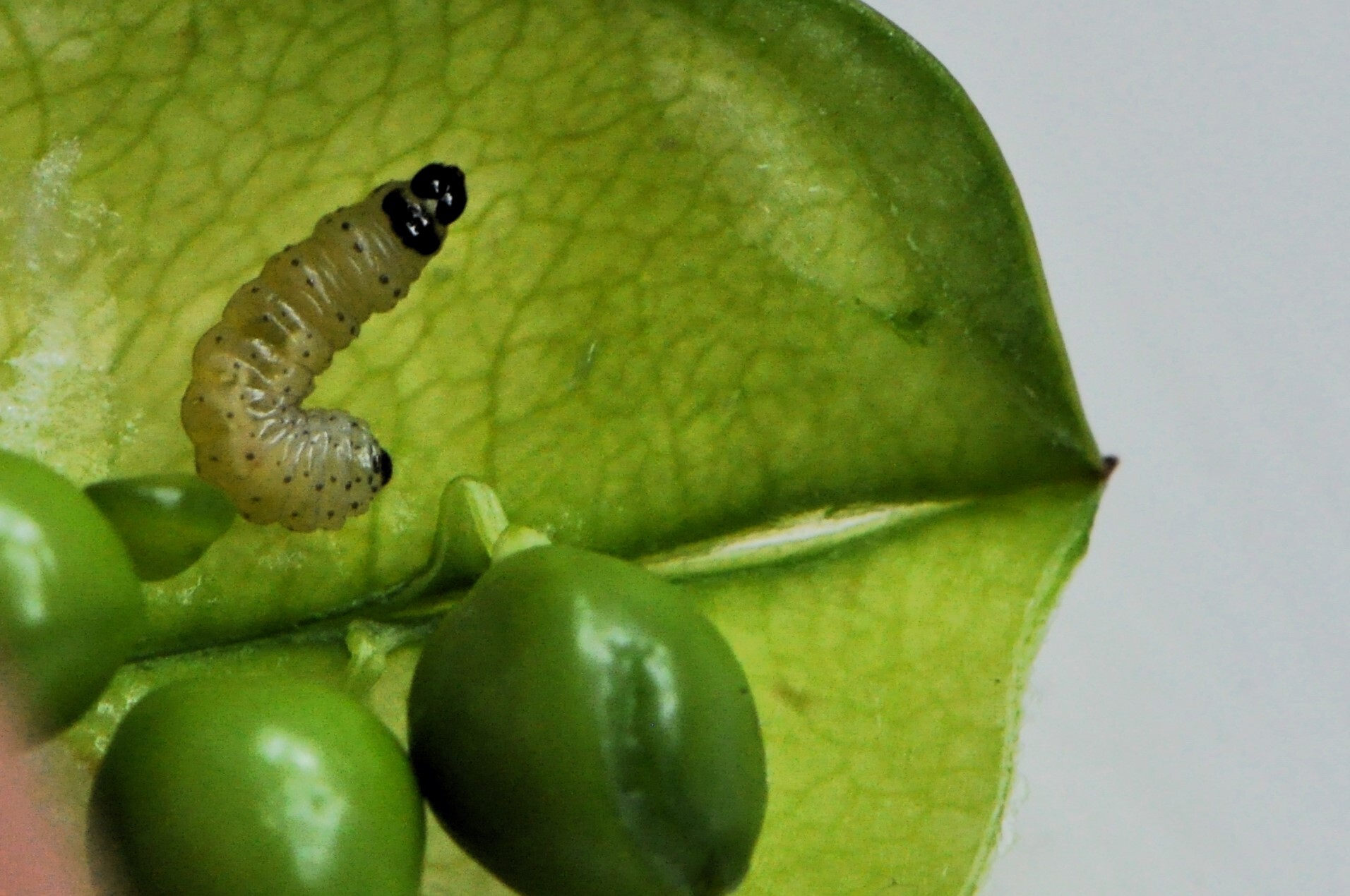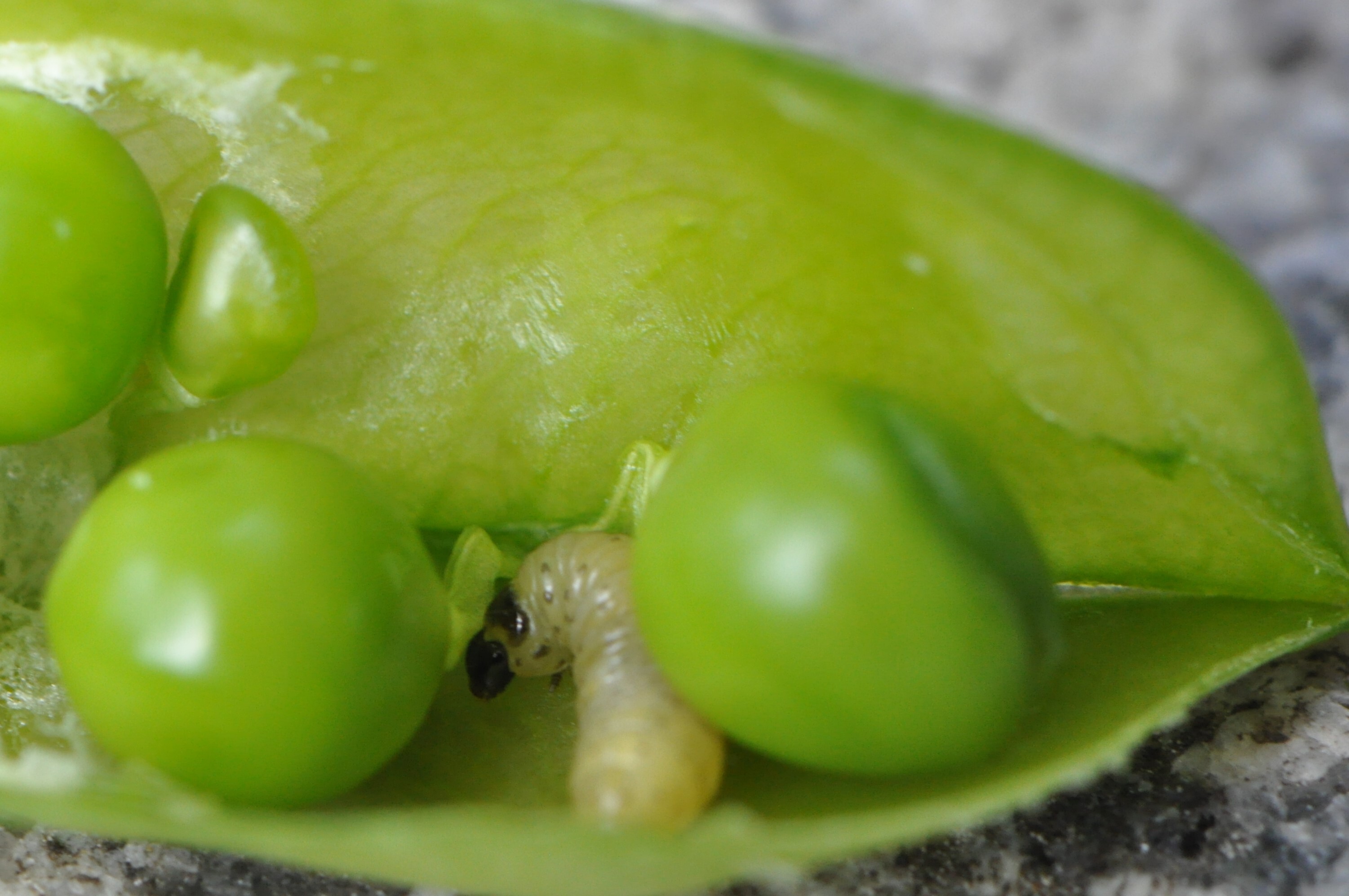 Największe straty powoduje żerowanie gąsienic wewnątrz strąków na nasionach. W jednym strąku zazwyczaj przebywa jedna larwa, choć czasami mogą występować dwie lub trzy, pod warunkiem że wgryzły się do niego w tym samym czasie. Jeśli nowa gąsienica próbuje dostać się do już zajętego strąka, zwykle słabsza larwa zostaje zabita.